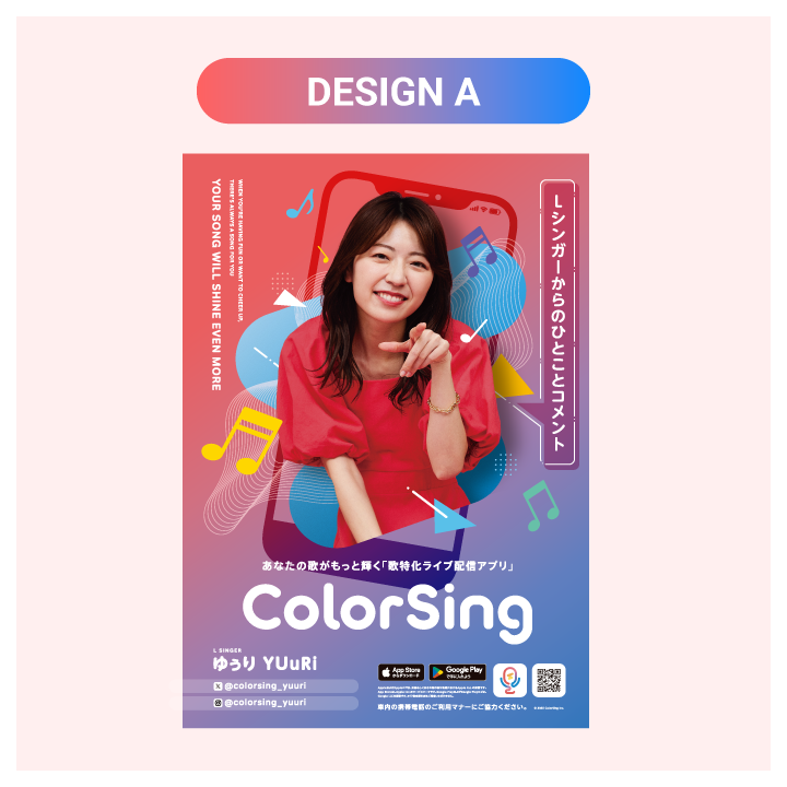 ※画像内のQRコードは、ColorSingアプリダウンロードページに遷移します。