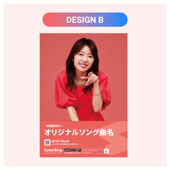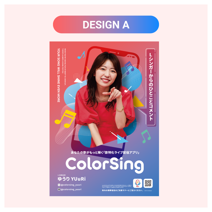※画像内の「ゆぅり YUuRi」は提出いただいたLシンガー名、「@colorsing_yuuri」は提出いただいたSNSアカウント名の名入れ場所に対応しています。