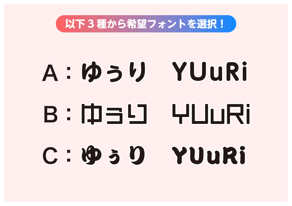※名入れのフォントは上記A, B, Cの3種から選択できます。