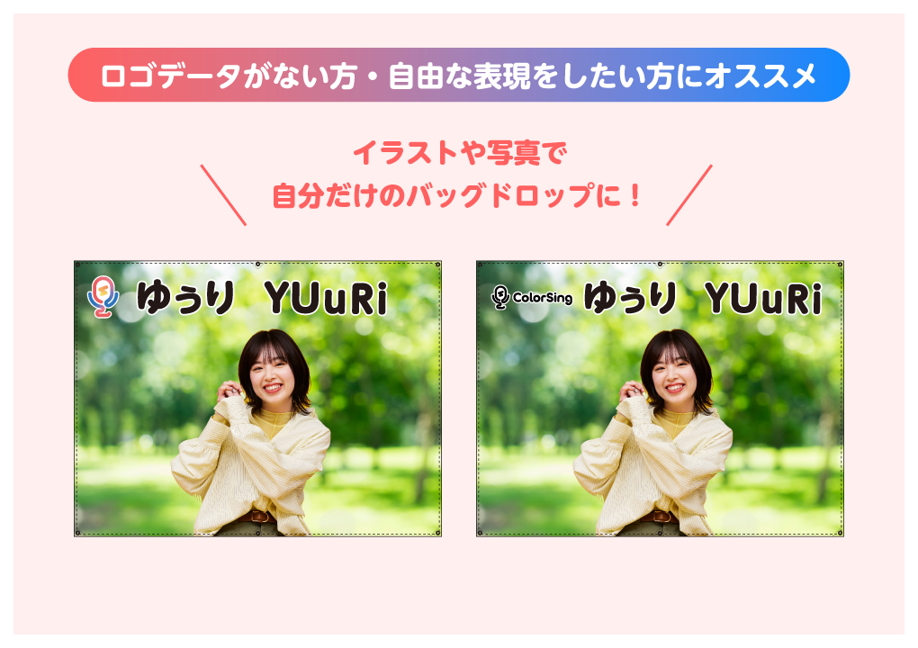 Lシンガー名、希望のイラストや写真が入ったバッグドロップ(垂れ幕)が制作できます!