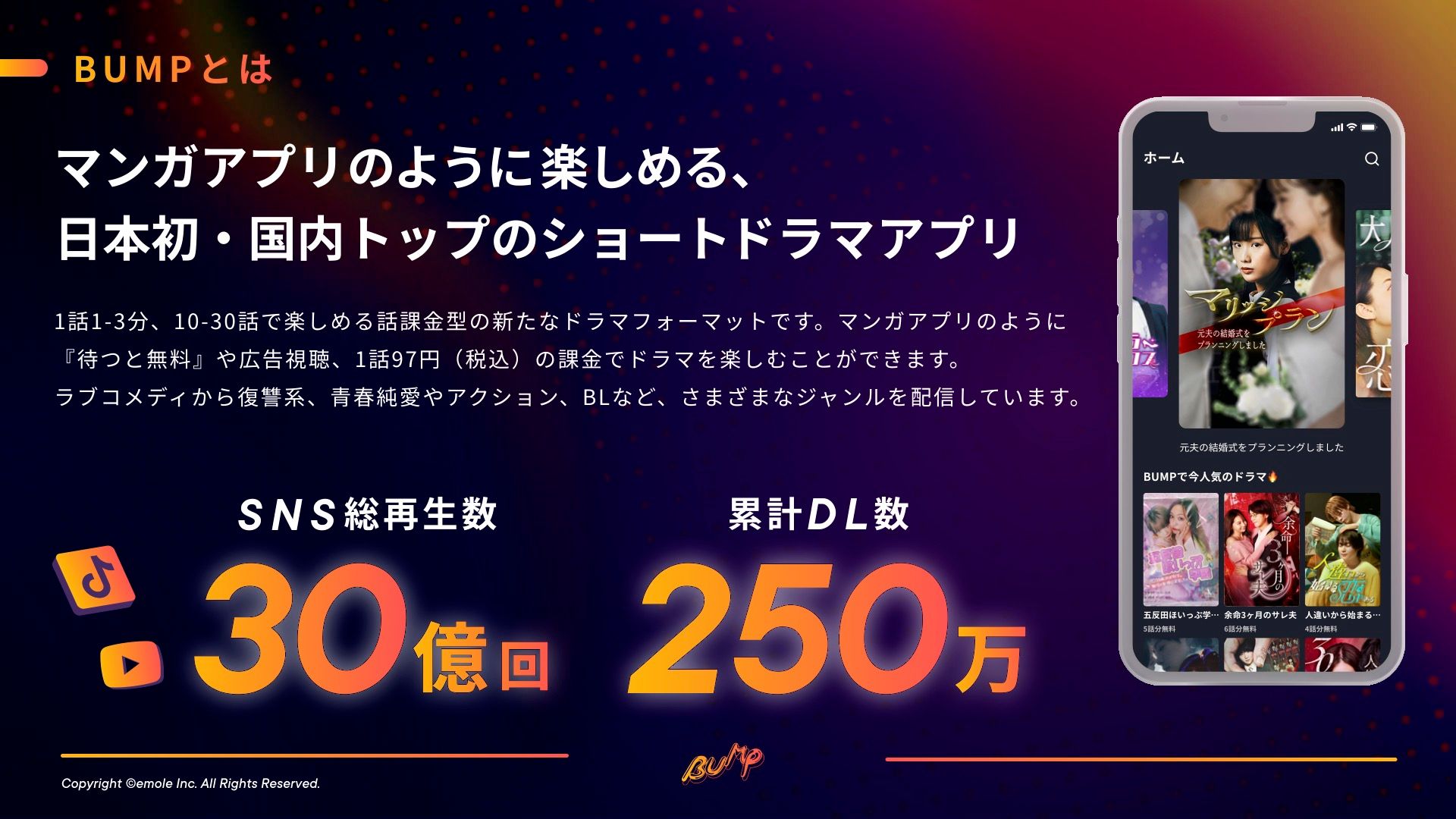 - 完成したドラマの著作権は、運営会社(BUMP運営元:emole社) に帰属します。