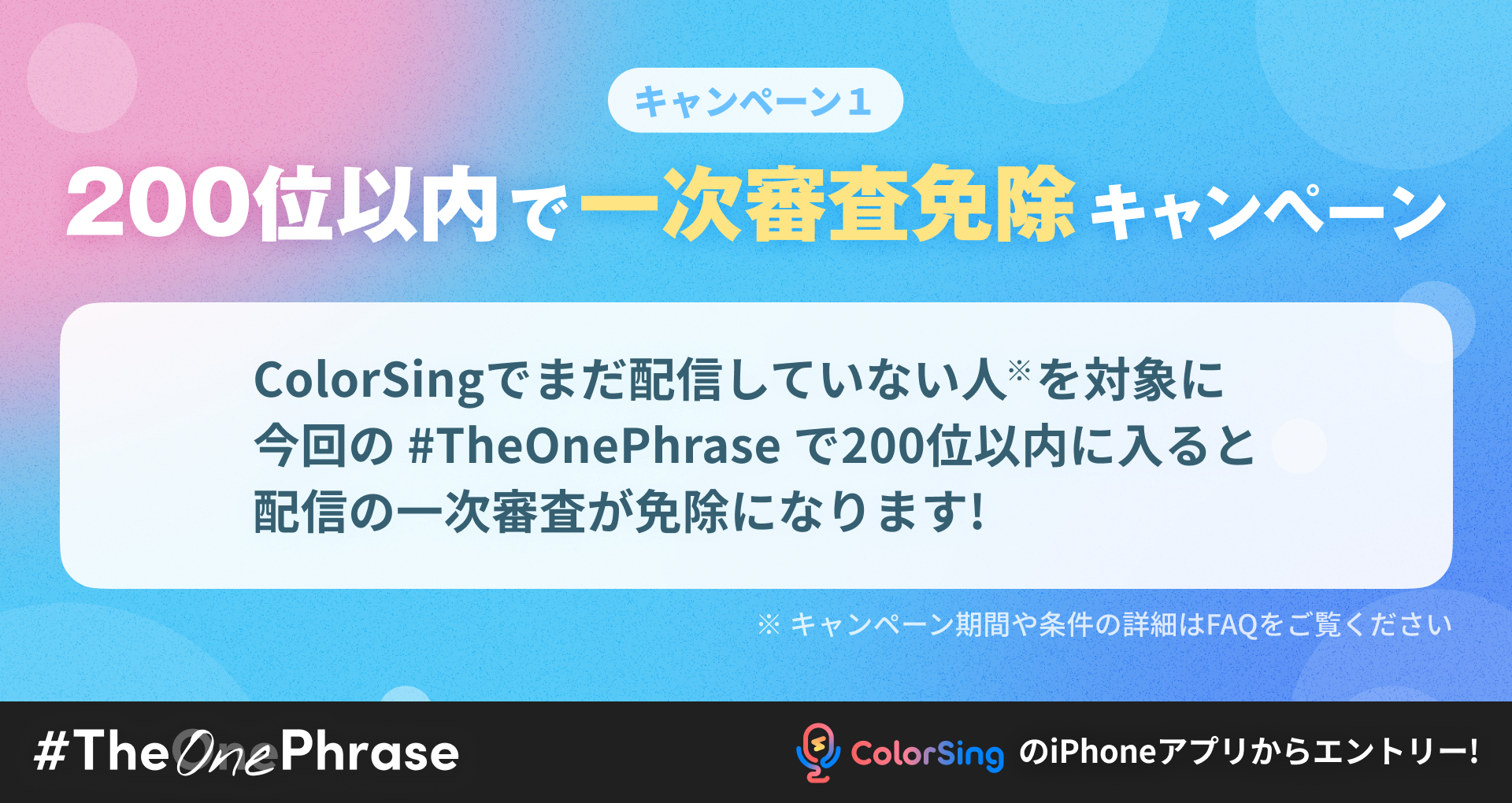#TheOnePhrase とは、20秒程の1フレーズを歌声だけ(名前・映像・サムネが伏せられた状態)で良さを競う、投稿型のイベントです。